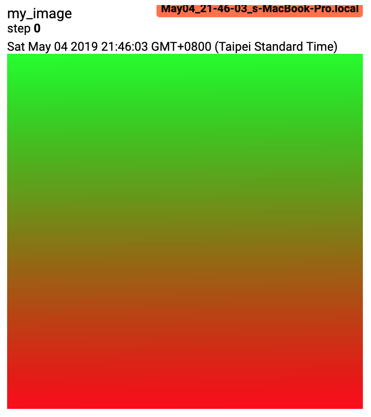 from torch.utils.tensorboard import SummaryWriter import numpy as np img = np.zeros((3, 100, 100)) img[0] = np.arange(0, 10000).reshape(100, 100) / 10000 img[1] = 1 - np.arange(0, 10000).reshape(100, 100) / 10000 img_HWC = np.zeros((100, 100, 3)) img_HWC[:, :, 0] = np.arange(0, 10000).reshape(100, 100) / 10000 img_HWC[:, :, 1] = 1 - np.arange(0, 10000).reshape(100, 100) / 10000 writer = SummaryWriter() writer.add_image('my_image', img, 0) # If you have non-default dimension setting, set the dataformats argument. writer.add_image('my_image_HWC', img_HWC, 0, dataformats='HWC') writer.close()